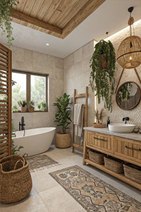 Disposez des vases en céramique, des paniers en jute, des fauteuils ou miroir en rotin et créez une ambiance chaleureuse et moderne tout en restant en harmonie avec la nature.